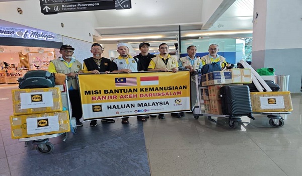 3 orang sukarelawan HALUAN berlepas ke Aceh bagi melaksanakan Misi Kemanusiaan Banjir Aceh dari Lapangan Terbang Antarabangsa Pulau Pinang/foto FB HALUAN Pulau Pinang