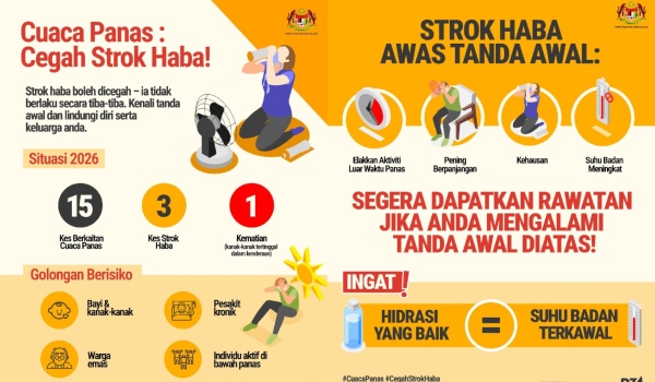 PUTRAJAYA, 23 Mac – Sebanyak 15 kes berkaitan cuaca panas dilaporkan setakat ini bagi 2026, termasuk tiga kes strok haba dan satu kes kematian melibatkan…
